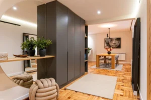 Mobiliario inteligente que optimiza cada metro cuadrado. Conceptualizamos soluciones de diseño, carpintería, marmolería, pintura, iluminación, entre otros, que fusionan funcionalidad y estética. Diseñamos piezas exclusivas y armarios empotrados que maximizan el almacenamiento, utilizando materiales de alta gama para transformar áreas convencionales en espacios altamente organizados, elegantes y eficientes.